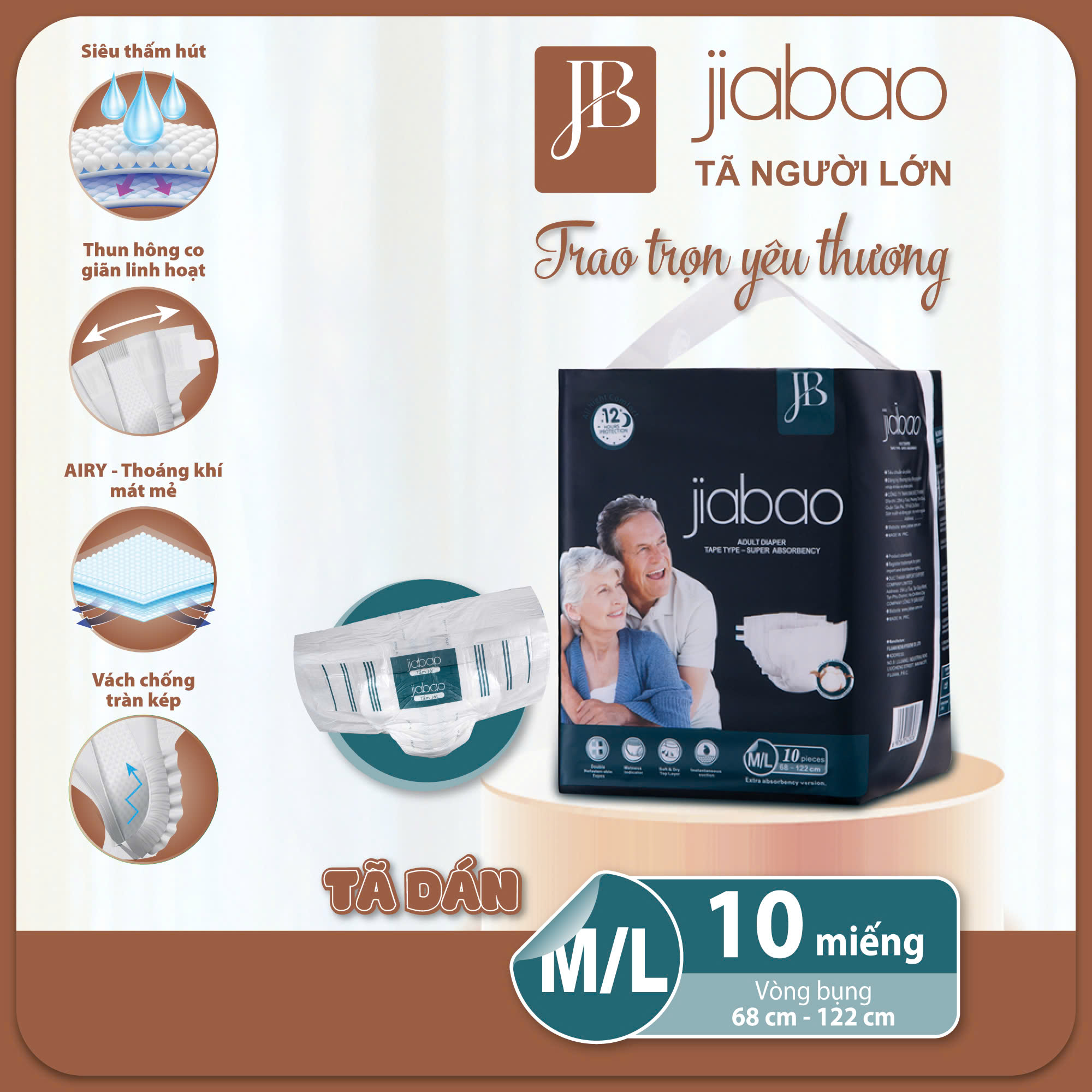 Tên sản phẩm: Tã Dán Người Lớn Jiabao Công Nghệ Nhật Bản – Bịch 10 Miếng Size M/L