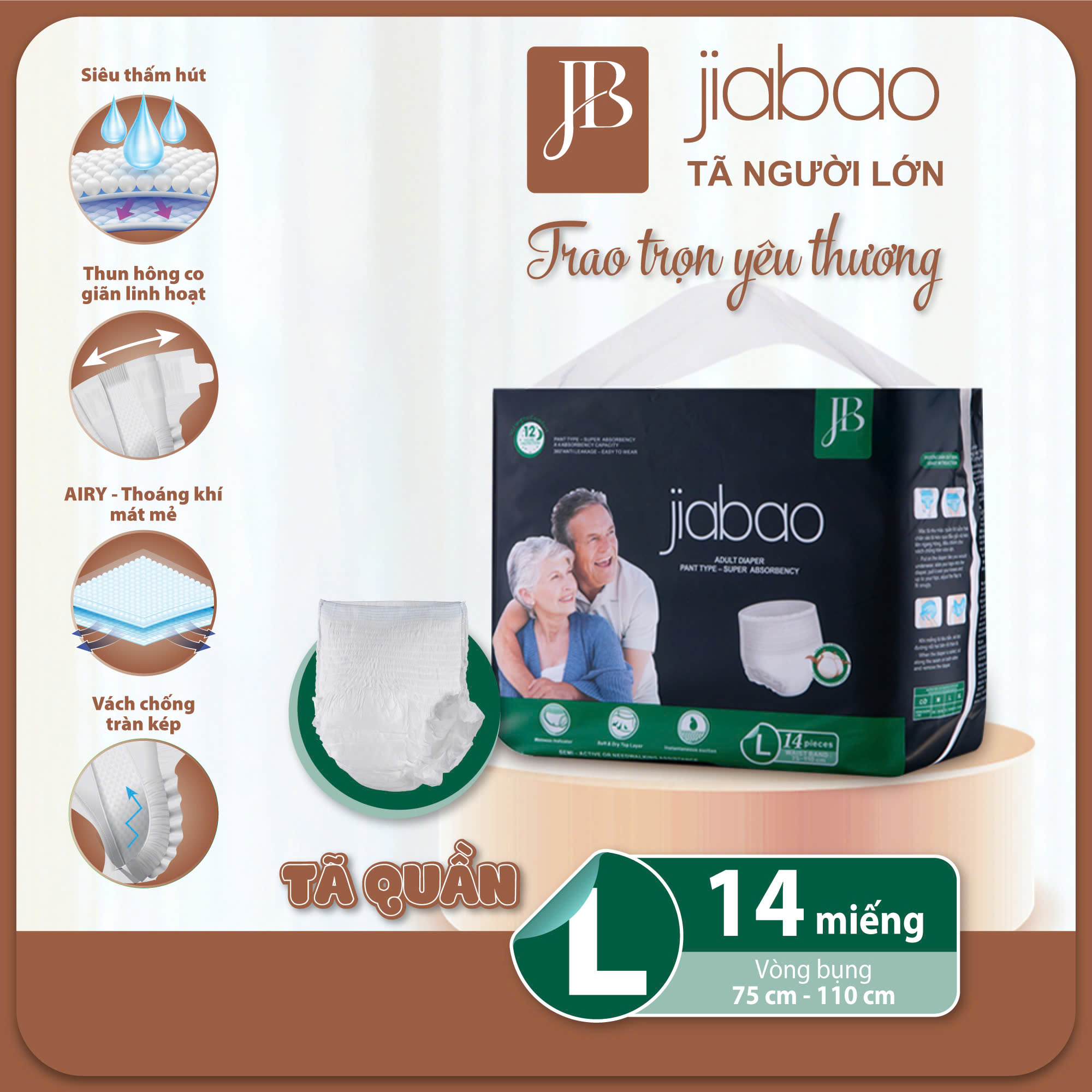 Tên sản phẩm: Tã Quần Người Lớn Jiabao Công Nghệ Nhật Bản – Bịch 14 Miếng Size L